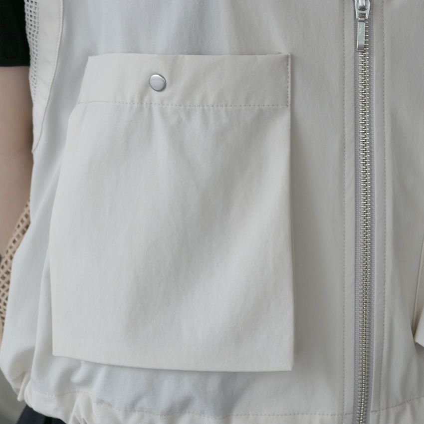 MARIED'OR/マリードール メッシュ切り替えショートベスト 45213 コクーン ギャザー ZIP ナイロン アウター